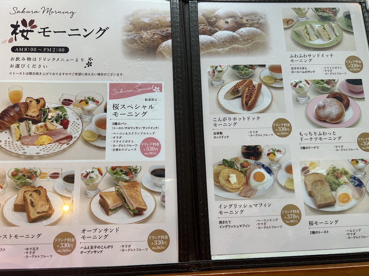 【桜珈琲】モーニングメニューは8種類、午後2時まで提供