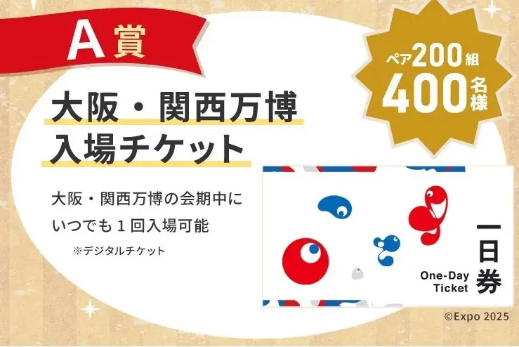 (画像:プレスリリースより) 【A賞】 大阪・関西万博 入場チケット 200組 400名様